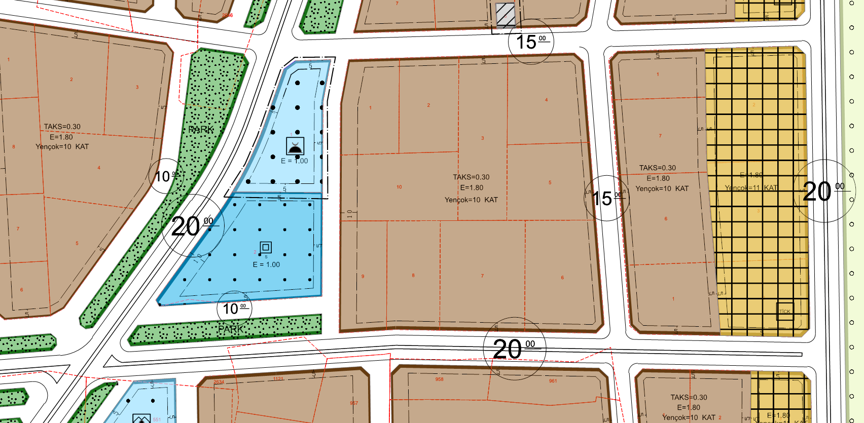 MEKÂNSAL PLANLAR YAPIM YÖNETMELİĞİNİN 33. MADDESİ GEREĞİNCE; 1/1000 ÖLÇEKLİ