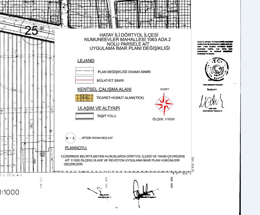 NUMUNEEVLER MAHALLESİNDE BULUNAN 1063 2 NUMARALI PARSELDE ADA AYRIM ÇİZGİSİNİN