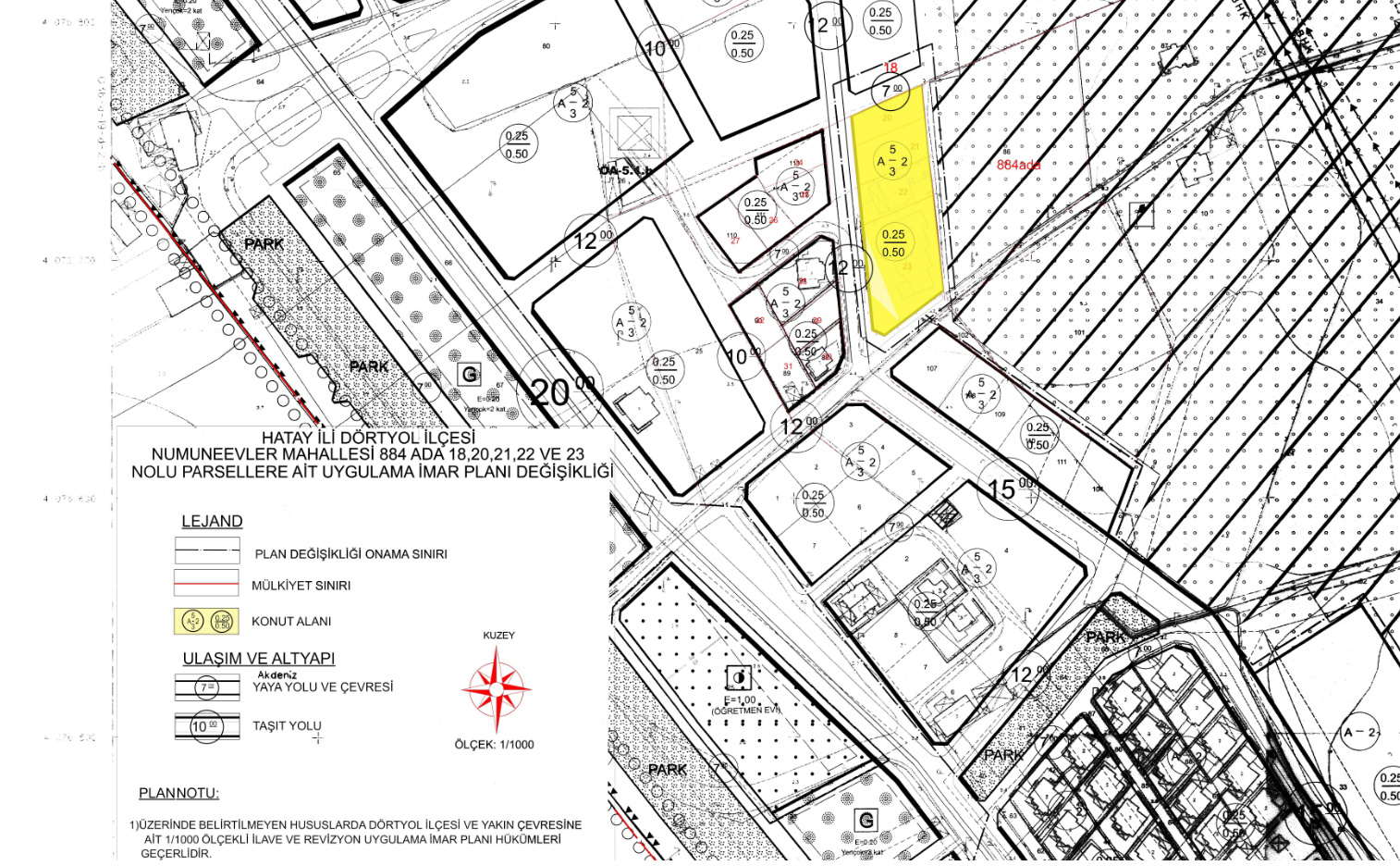 NUMUNEEVLER MAHALLESİNDE BULUNAN 884 ADA 18,20,21,22 ve 23 NUMARALI PARSELLER YÖNELİK